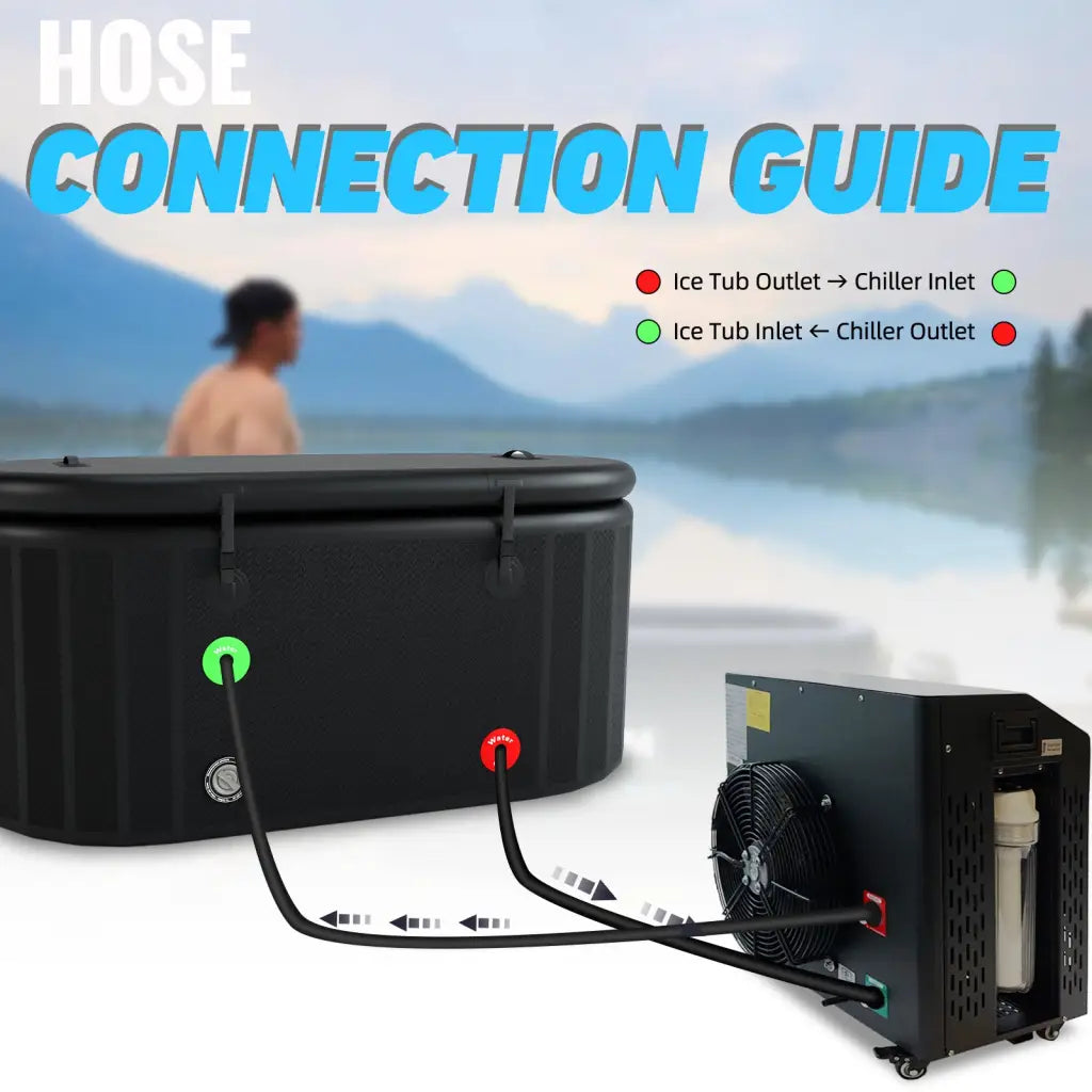 - Complete Accessory Kit for Easy Setup: The cold plunge chiller comes with everything you need for installation and long-term maintenance. The included user manual ensures easy setup, while the PIFE tape, water pipes, rubber seals, plastic wrench, adapter, and quick connectors provide all the essential tools for seamless operation. Regular cleaning and filter changes will also keep your cold plunge with chiller operating at peak efficiency