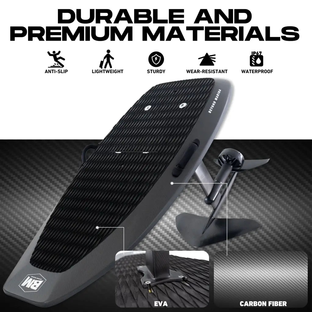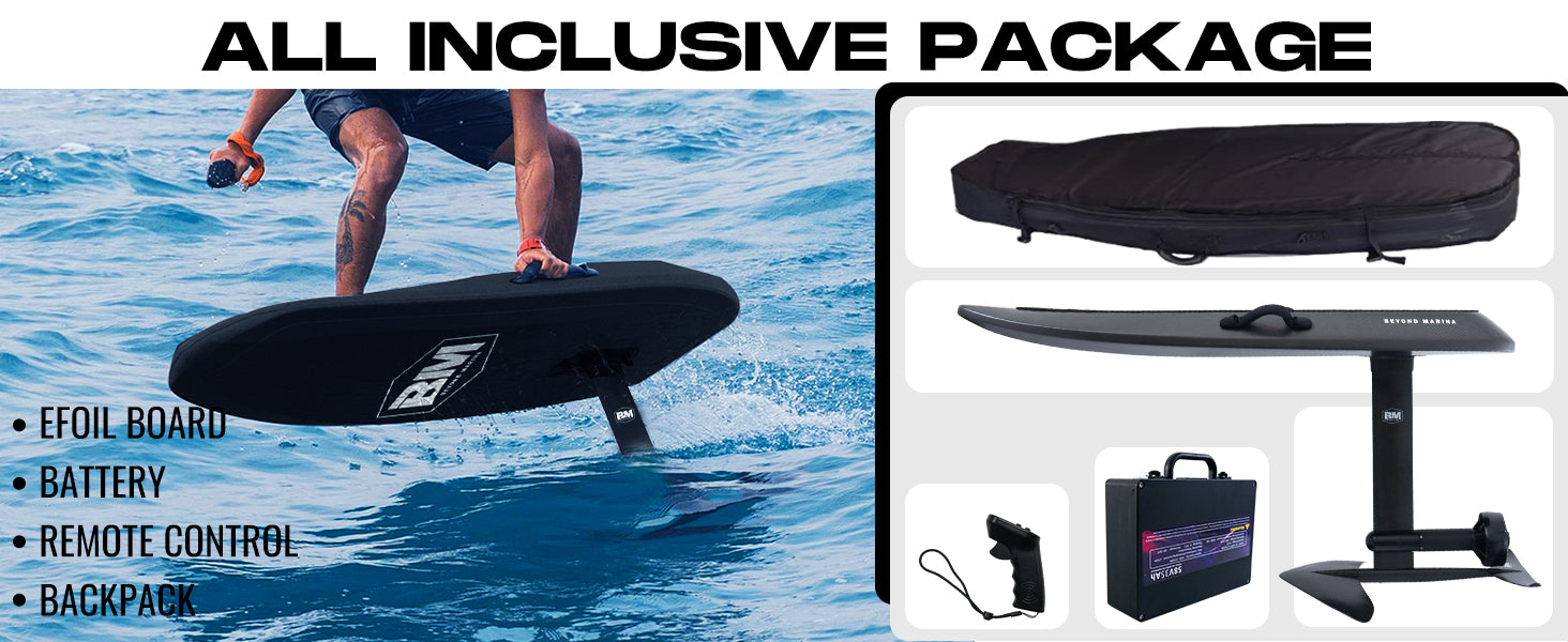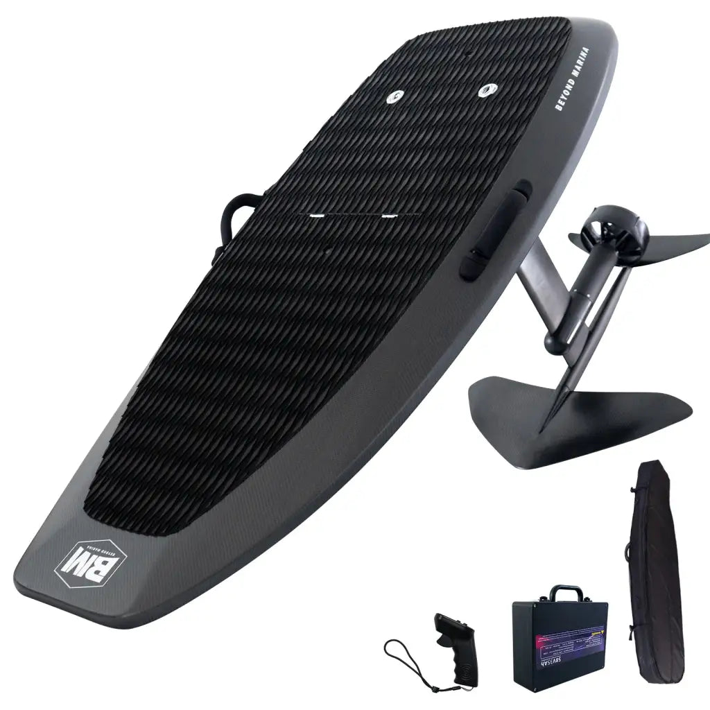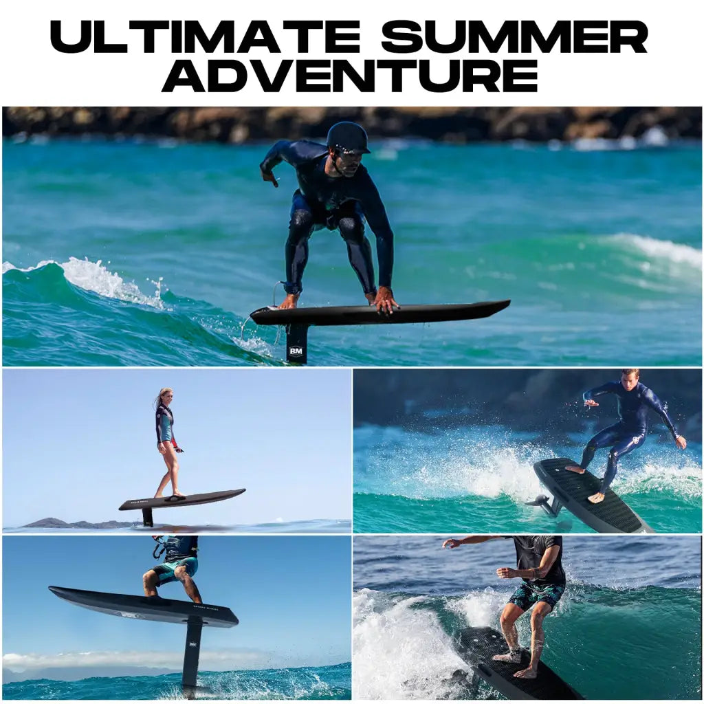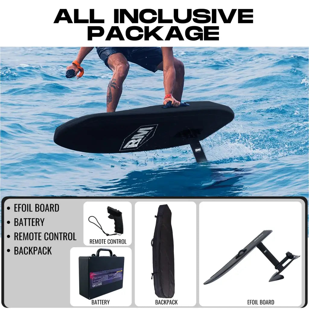 Introducing AquaGlide Efoil, the revolutionary way to glide into the future. With cutting-edge technology and sleek design, this electric hydrofoil board will transform your water sports experience. Effortlessly reach speeds of up to 37 mph, cutting through the water with ease. Enhance your performance and conquer the waves with AquaGlide Efoil.