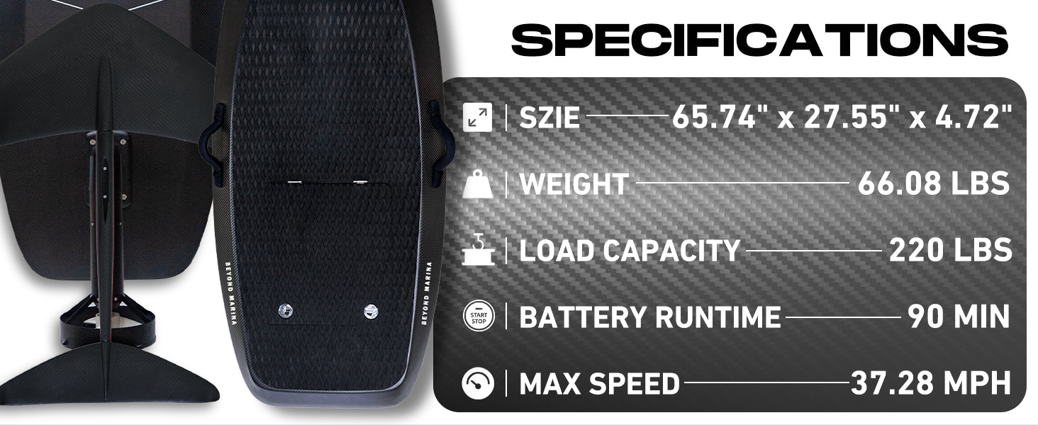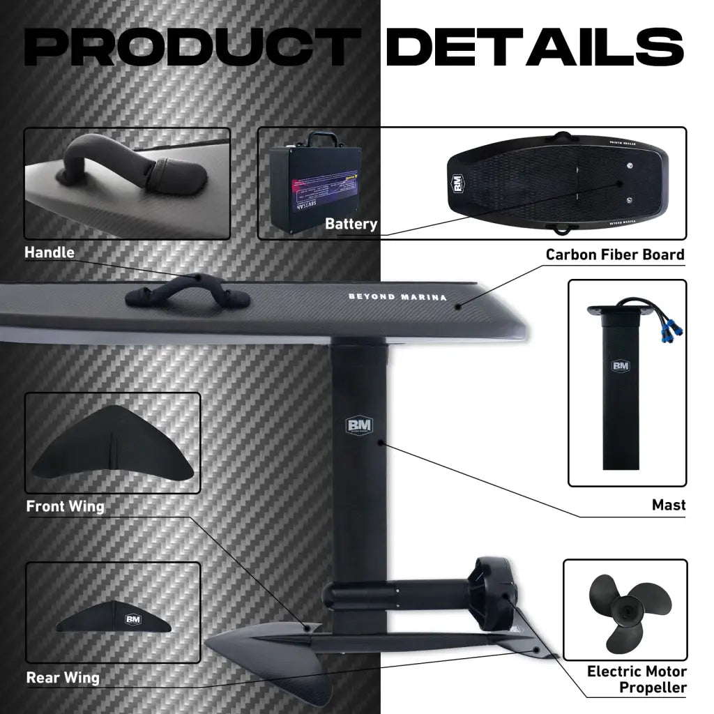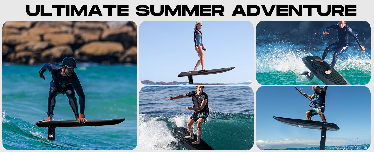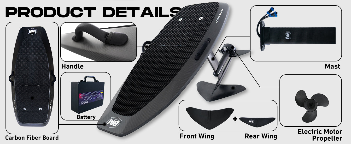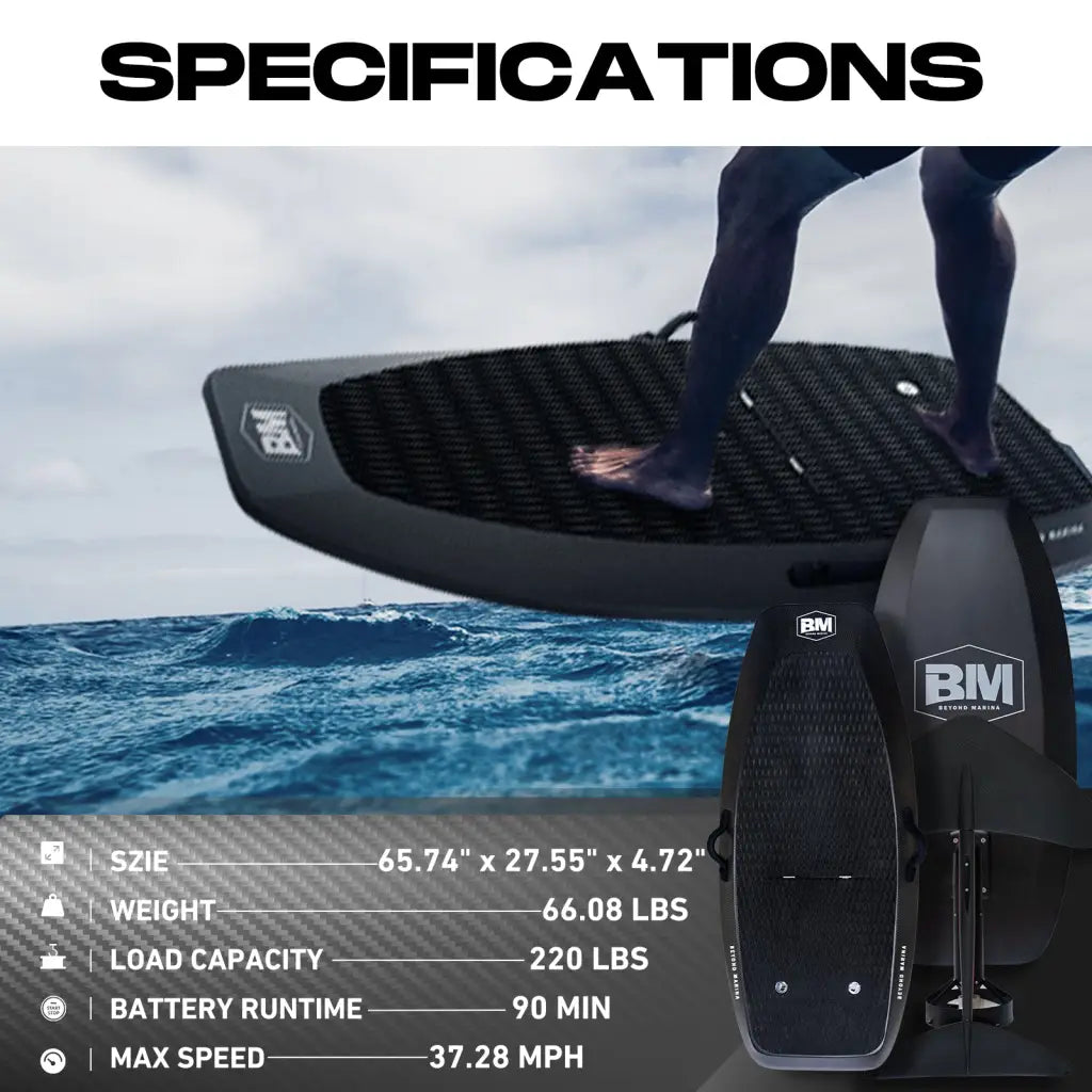 Introducing AquaGlide Efoil, the revolutionary way to glide into the future. With cutting-edge technology and sleek design, this electric hydrofoil board will transform your water sports experience. Effortlessly reach speeds of up to 37 mph, cutting through the water with ease. Enhance your performance and conquer the waves with AquaGlide Efoil.