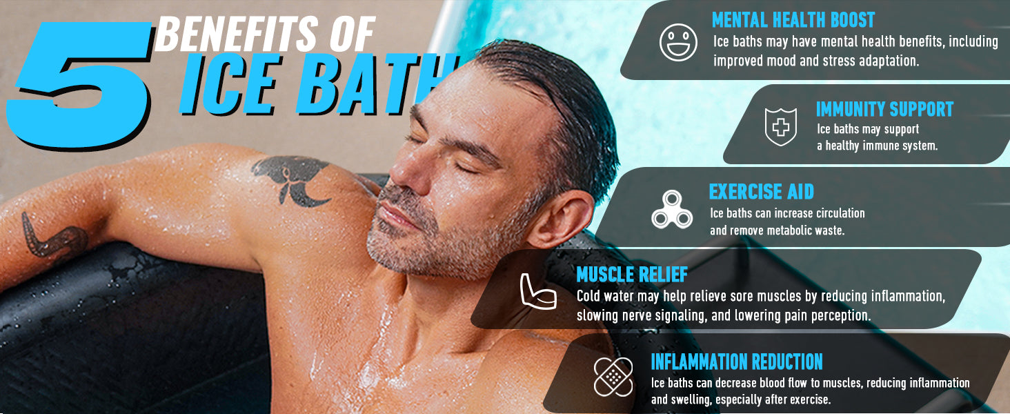 - Benefits of Ice Baths: Regular cold exposure through ice baths boosts dopamine, endorphin, and norepinephrine levels, leading to immediate increases in energy, alertness, and happiness. Additionally, it enhances blood flow, accelerates muscle recovery, and improves skin and hair health. Whether you're an athlete or a fitness enthusiast, incorporating ice baths into your routine can aid in quicker recovery and overall performance improvement