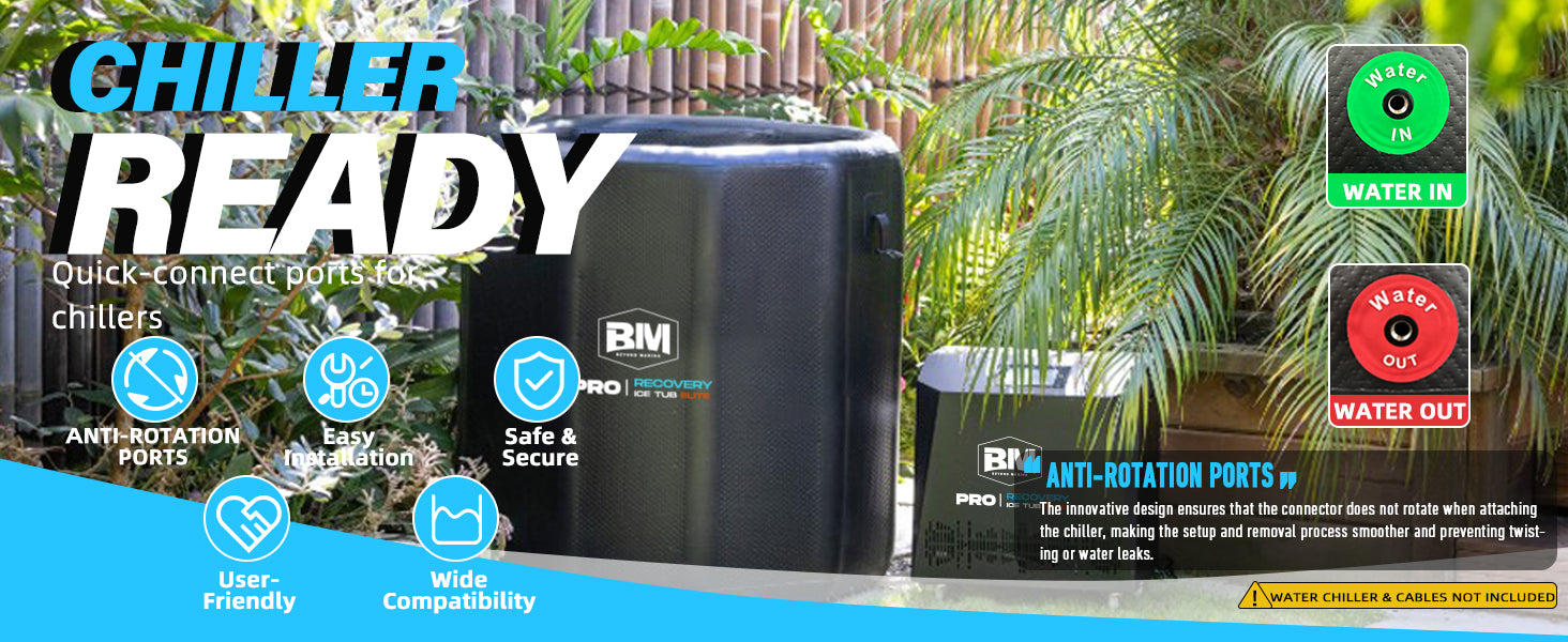 - Chiller-Ready: Features 1/2”NPT ports, The BM proprietary anti-rotation design for secure installation and removal, ensuring reliable connection with water chillers, ports tested and optimized to eliminate common leakage issues