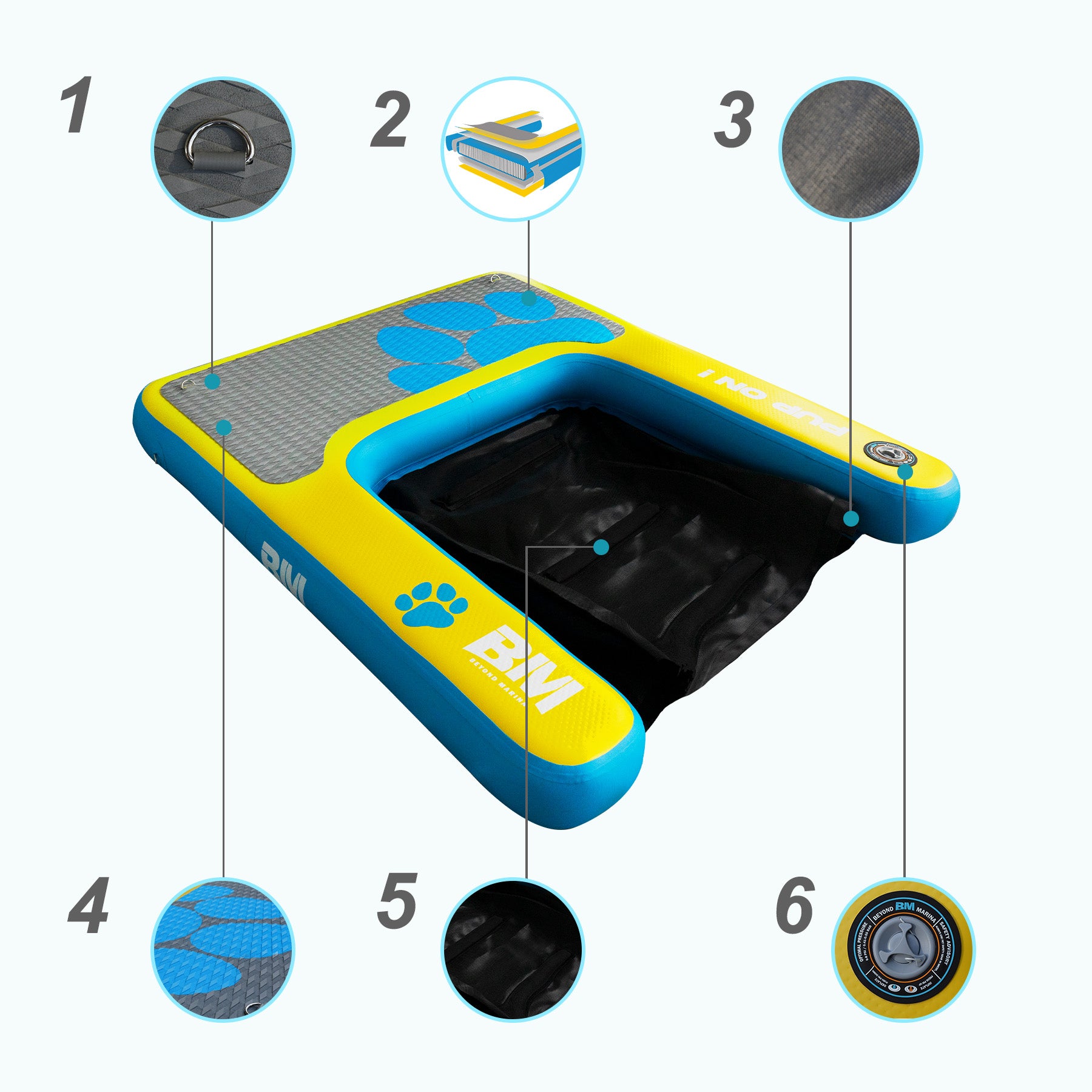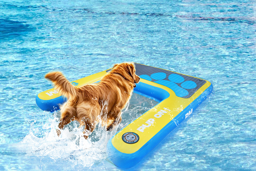 Introducing the Beyond Marina Pup Platform Dog Pool Ramp - Pup On! This innovative inflatable water ramp is specifically designed to enhance your dog's water adventures by providing a safe and accessible way for them to enter and exit the water. Perfectly suited for various settings such as lake docks, dog boats, and floating pontoons, this extra-large dog pool ramp boasts a robust design featuring a sturdy, non-slip EVA platform. This ensures your furry friends can confidently access the water, reducing the risk of slips and falls. With the Beyond Marina Dog Pool Ramp, you can create enjoyable and stress-free aquatic experiences for your pets, transforming their time spent at the water’s edge into fun-filled moments.