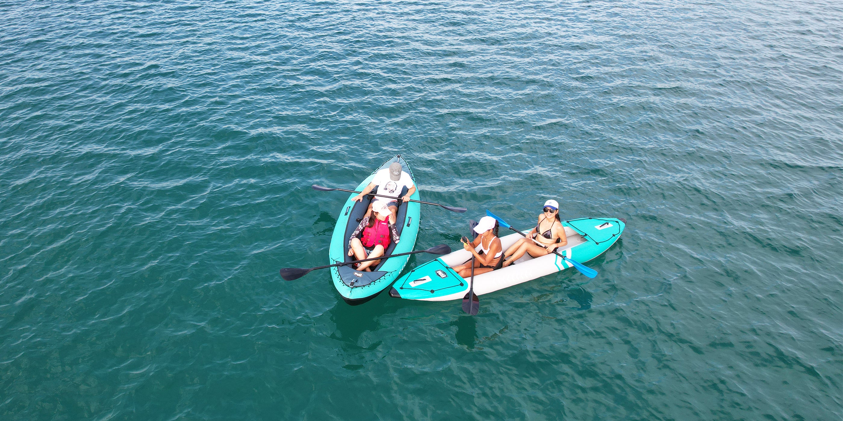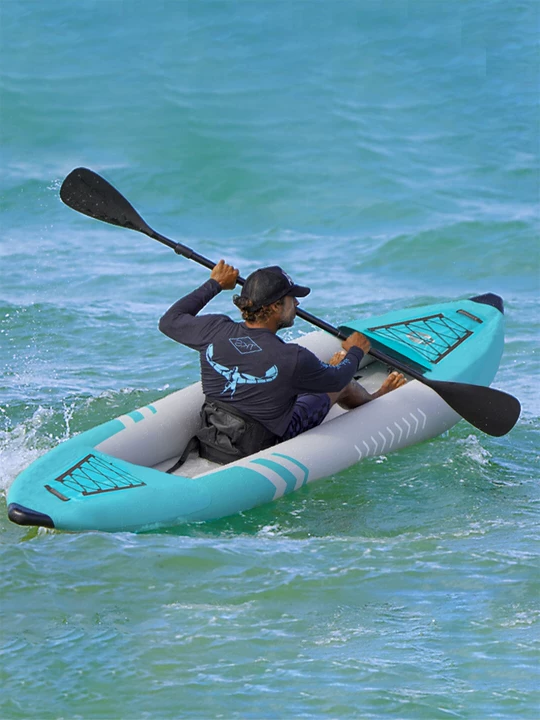 - Everything Included: Our Kayak offers exceptional value for its price, including everything you need to get started. The package includes a blow up kayak, seat, quick-release fin, high-pressure pump, storage bag, and repair kit, as well as 2 x adjustable EVA padded seats, 2 x aluminum kayak paddles with ergonomic grip handles, 2 x adjustable footrests, and 2 x fins.