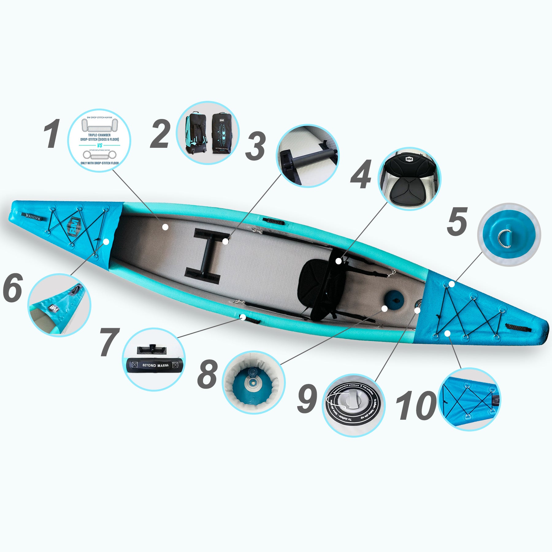 1. Triple-Chamber Drop-Stitch Construction (Sides & Floor) — Ensure maximum safety, comfort, and durability.
