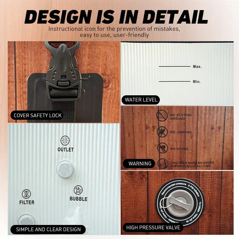 - Enhanced Comfort & Heat Retention: To maximize comfort and energy efficiency, the hot tub includes soft foam mats designed for placement underneath the tub. These mats offer cushioning for added comfort, serve as insulation to help retain heat, and protect the inflatable hot tub from punctures or damage. By improving heat retention, these mats help maintain consistent water temperature and reduce energy consumption, ensuring your outdoor hot tub remains warm and inviting even during colder weather.