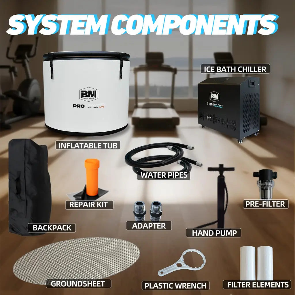 - 完全なリカバリーシステムとアクセサリー:このパッケージには、高圧ポンプ、グランドシート、PTFEテープ、配管、シール、レンチ、アダプター、クイックコネクター、交換可能なフィルターなど、迅速なセットアップと継続的なメンテナンスに必要なものがすべて含まれています。これらのアクセサリーにより、シームレスな冷水または温水プール体験が保証され、お客様は手間をかけずに回復に集中できます。この包括的なシステムは、効率的な操作、簡単な清掃、そして長期的な耐久性をサポートし、このインフレータブルアイスバスをあなたのウェルネスルーチンに多用途に追加できるものにします。