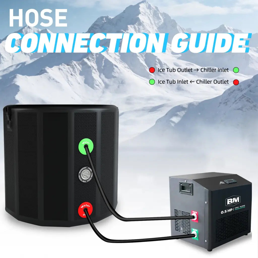The chiller works with most standard ice bath tubs, including inflatable and portable models, thanks to its universal fittings and hoses. For best results, it’s recommended to pair it with tubs up to 80 gallons (303 liters), matching the capacity of the Beyond Marina Ice Tub. This ensures optimal cooling efficiency.