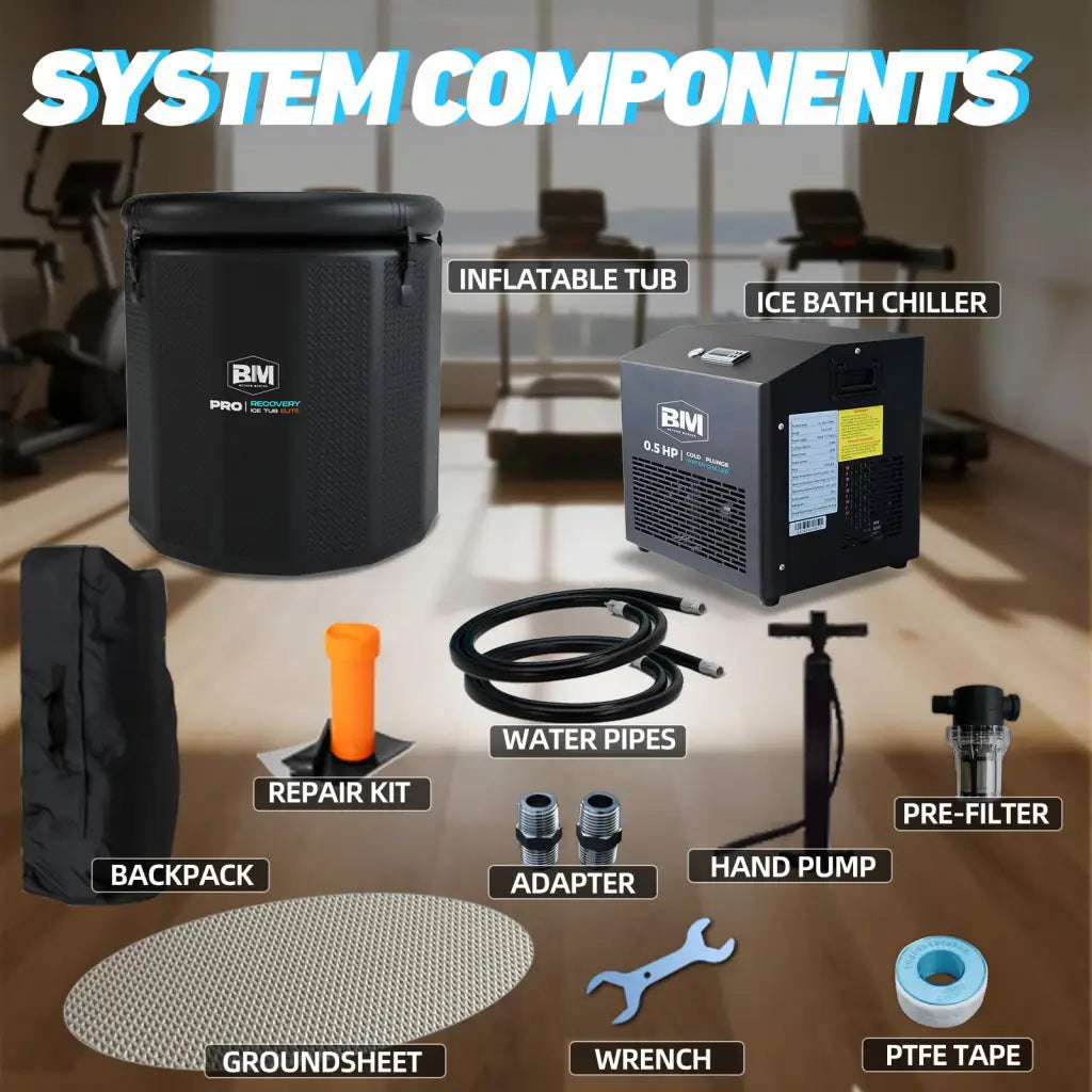 - セットアップとリカバリーのための完全なサポートキット:このシステムには、高圧ポンプ、グランドシート、そして冷却装置用のアクセサリーキット(水道管、PTFEテープ、シール、レンチ、コネクタ、マニュアル)が含まれており、セットアップが簡単で長期間の機能性を保証します。浴槽と冷却装置を組み合わせることで、運動後の回復と日々の健康維持を継続的にサポートします。