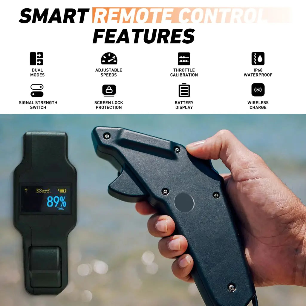 The IP68-rated waterproof remote offers intuitive control over gear, throttle, and safety settings. With auto-lock screen protection on water drop, it ensures safety, displaying battery, speed, gear, and more.