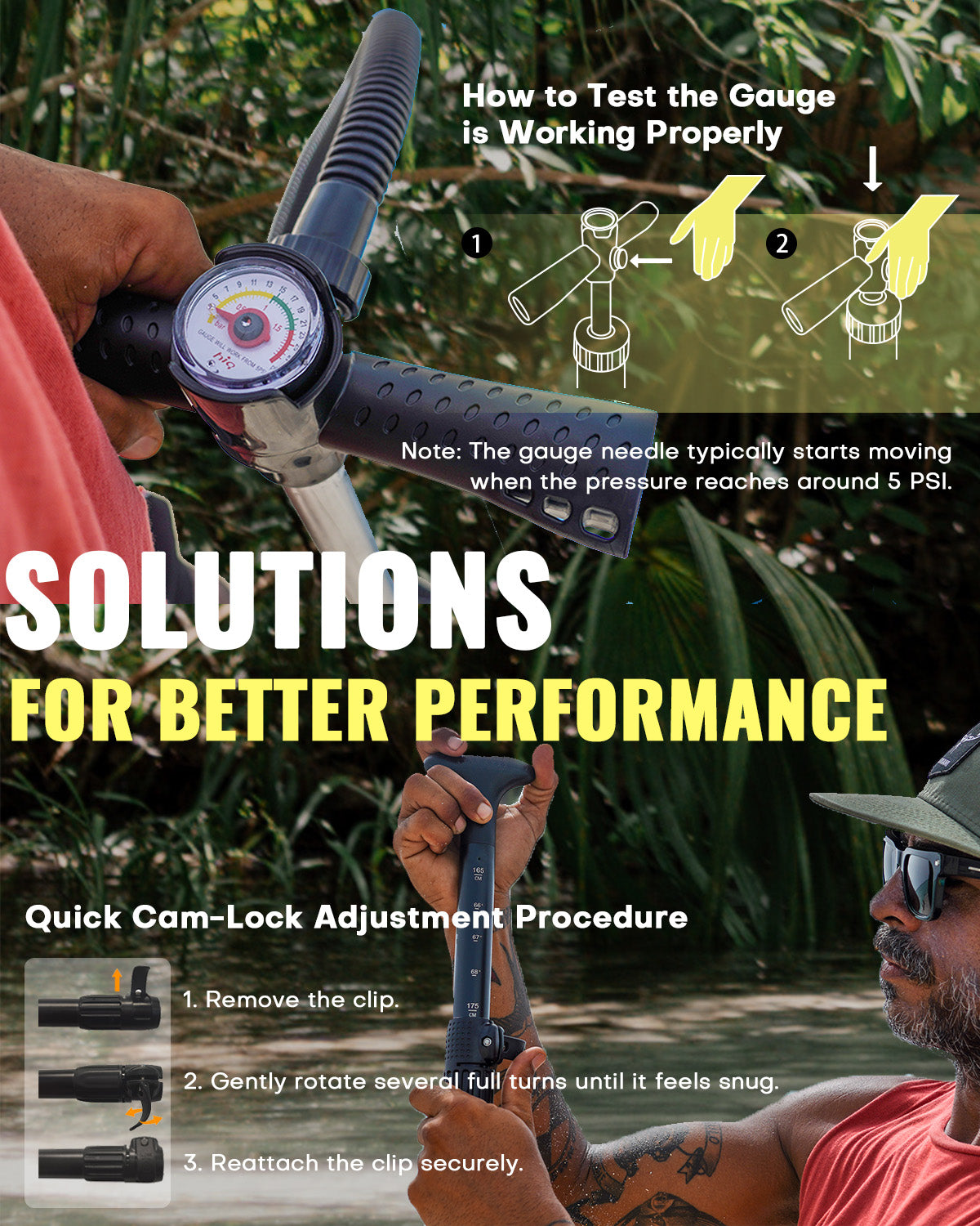 • ALL-IN-1 COMPLIMENTARY KIT - Get all the gear you need in one purchase! Comes with 3-piece adjustable paddle, high pressure pump, ankle leash, waterproof phone case, removable fin, etc. High pressure pump with sensitive gauge ensures easy and fast inflation. Well designed backpack can pack all the stuff, including everything for you to go straight from the box to the water.