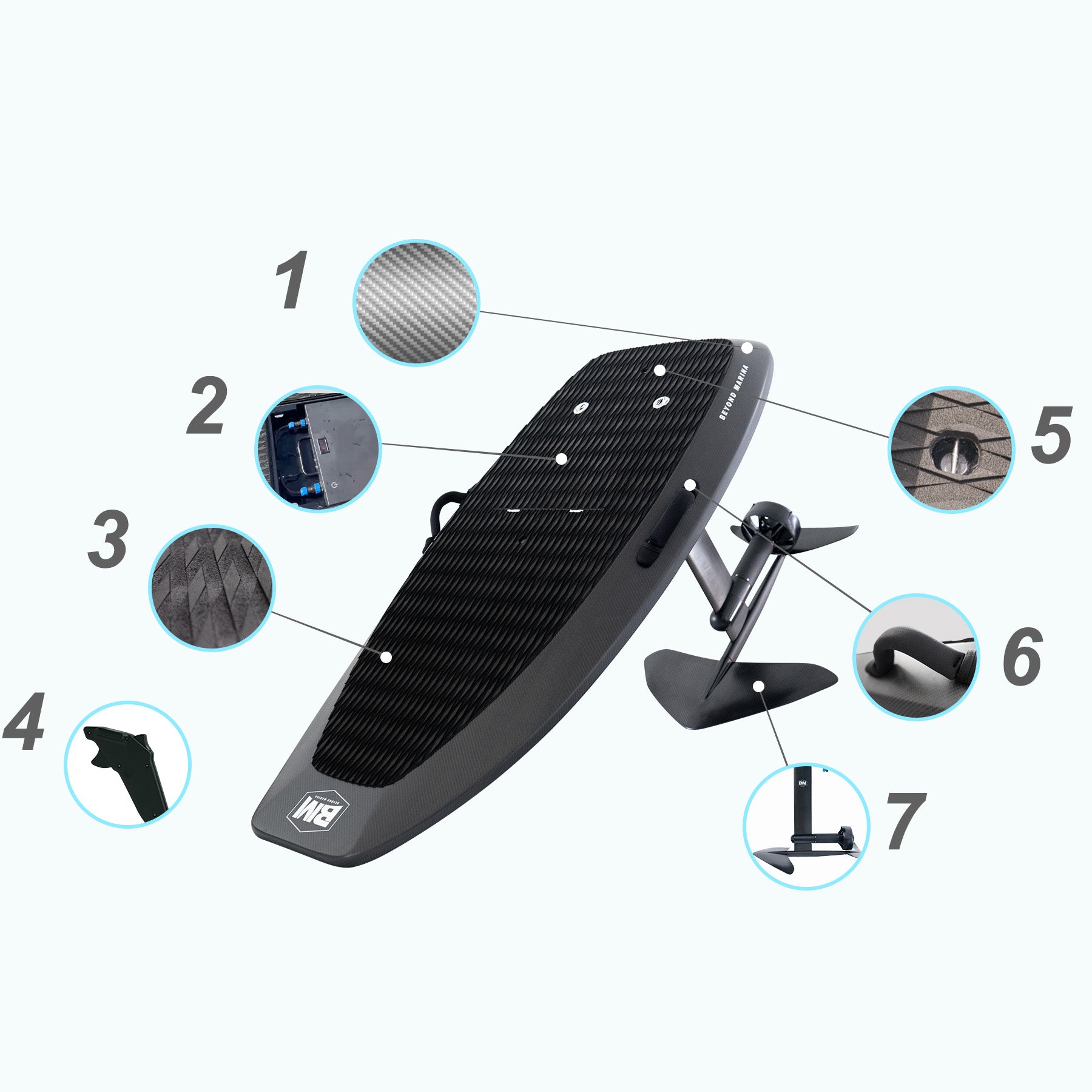 7. Optimized Propulsion System — Lightweight mast and wings reduce drag, deliver strong lift, and ensure stable, responsive control.