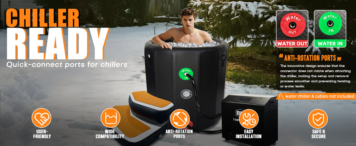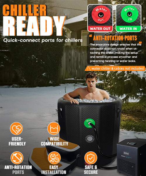Safer Entry & Exit with Anti-Slip Steps: Equipped with integrated anti-slip steps, this cold plunge tub makes getting in and out safer and more convenient—especially when wet and cold. The reinforced step design supports stability, reducing the risk of slipping and ensuring a secure plunge experience for all users
