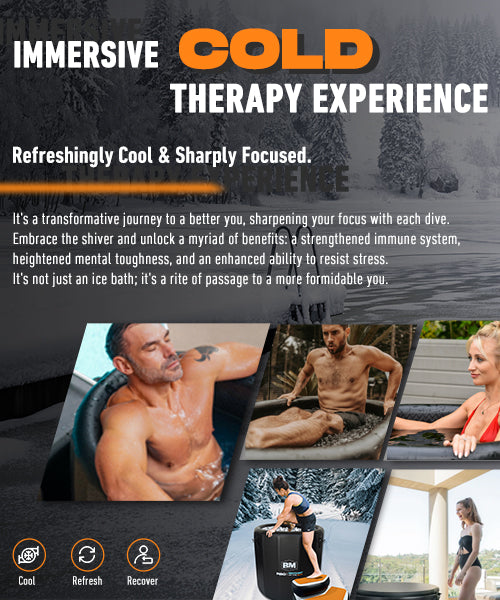 Complete Cold Therapy System with Proven Benefits: Measuring 39 (L) x 39 (W) x 35.4 (H) inches and holding 130 gallons (495 liters), the tub fits users up to 6’7” and 300 lbs. Includes a high-pressure pump, ground sheet, and child safety lock for enhanced safety. Regular ice baths are known to boost energy, accelerate recovery, improve circulation, and enhance skin and hair health—making it a powerful tool for athletes, fitness enthusiasts, and wellness seekers.