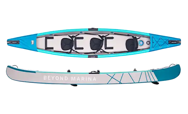 The Beyond Marina Drop Stitch Triple Seats Kayak Mariner is designed for reliable, durable, and comfortable kayaking. Its innovative tri-chamber drop stitch core construction ensures unparalleled durability and worry-free navigation through rough waters, while offering enhanced stability and a sturdy structure. Enjoy exciting kayaking adventures with this lightweight and meticulously crafted kayak.