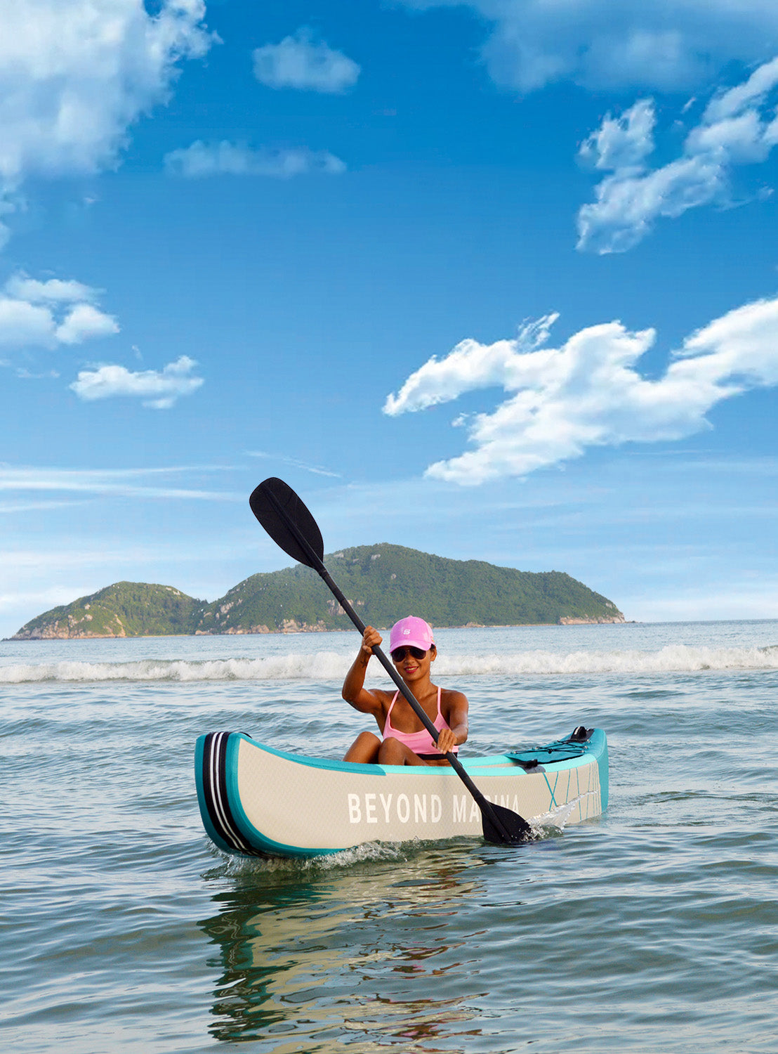 The Beyond Marina Drop Stitch Triple Seats Kayak Mariner is designed for reliable, durable, and comfortable kayaking. Its innovative tri-chamber drop stitch core construction ensures unparalleled durability and worry-free navigation through rough waters, while offering enhanced stability and a sturdy structure. Enjoy exciting kayaking adventures with this lightweight and meticulously crafted kayak.