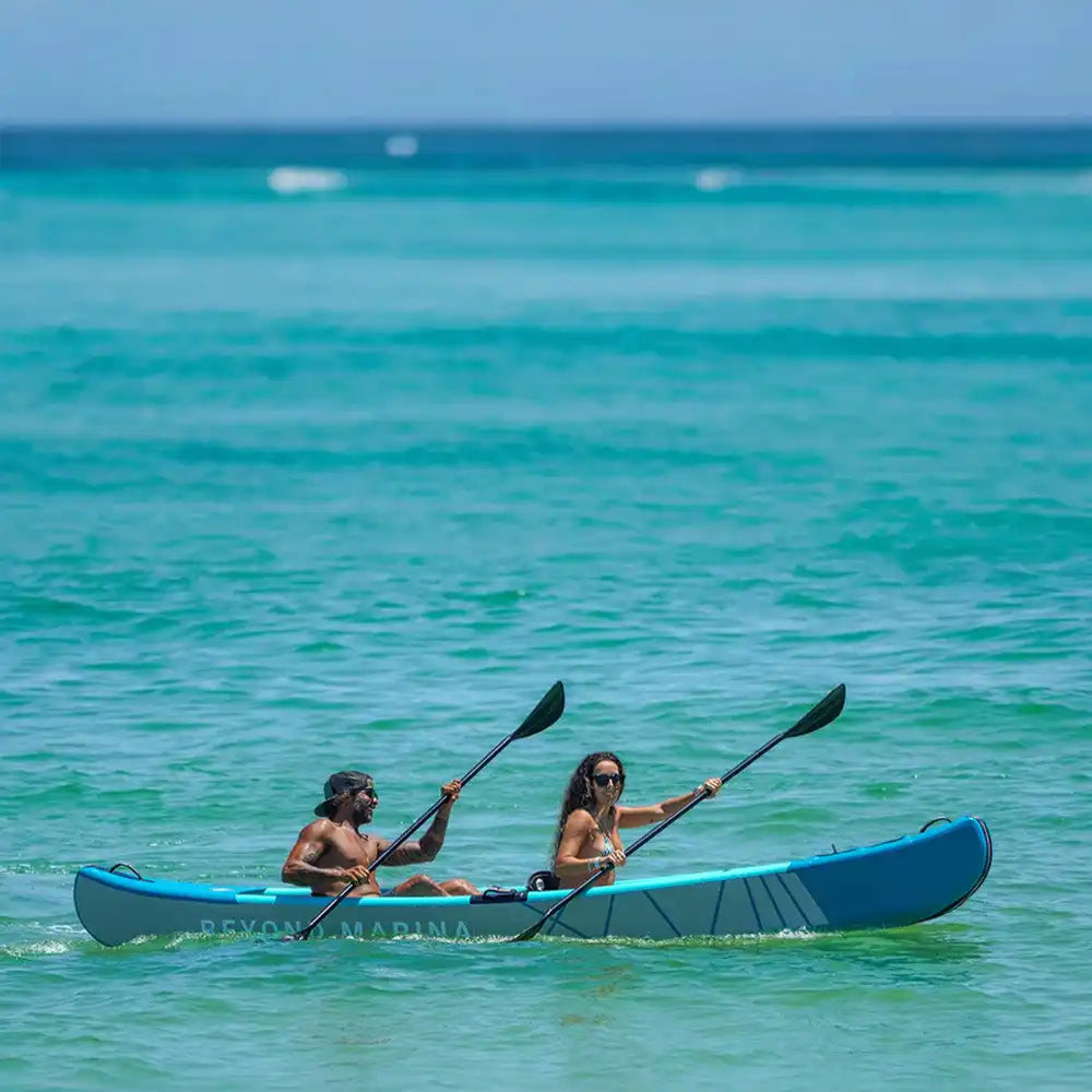 The Beyond Marina Drop Stitch Triple Seats Kayak Mariner is designed for reliable, durable, and comfortable kayaking. Its innovative tri-chamber drop stitch core construction ensures unparalleled durability and worry-free navigation through rough waters, while offering enhanced stability and a sturdy structure. Enjoy exciting kayaking adventures with this lightweight and meticulously crafted kayak.