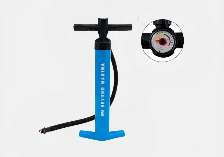 Our advanced dual-action hand pump makes inflating and deflating your SUP a breeze. The efficient design allows air to be pumped during both up and down strokes, cutting inflation time in half. Its powerful mechanism can also act as a vacuum for easy deflation. This versatile pump increases efficiency and reduces effort, enabling more time on the water.