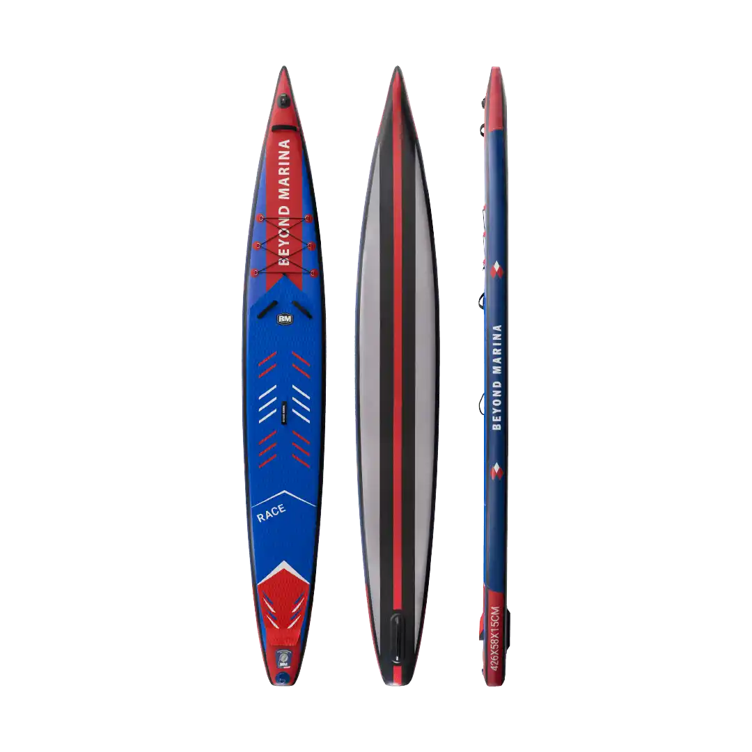 For racing, performance is critical, and some might wonder if an inflatable can match a hard board. The Beyond Marina RACE boards use a dual-core structure, Wielding Tech rail bands, and RDS double-layer PVC with woven ultra-light material, delivering rigidity and durability that rival hard boards. While hard boards may have a slight speed advantage due to their fixed shape, these inflatables minimize flex and optimize glide, making them highly competitive for racing.