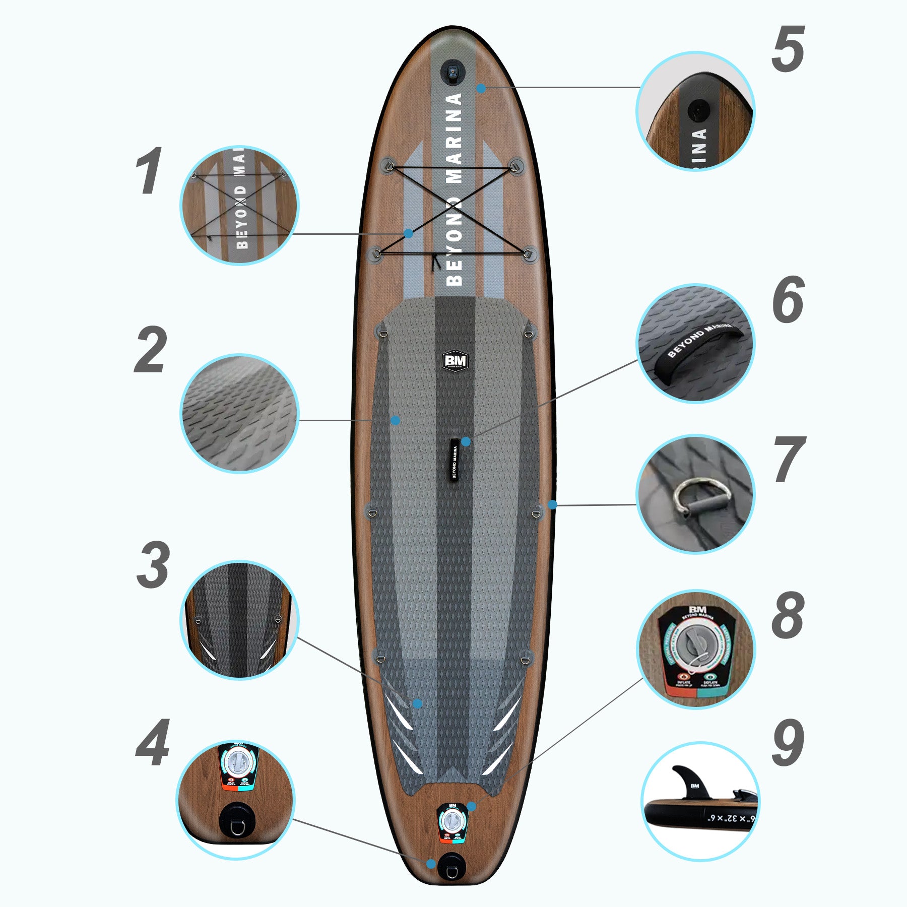 9. Removable Center Fin — Enhance portability and stability, improving control and propulsion.